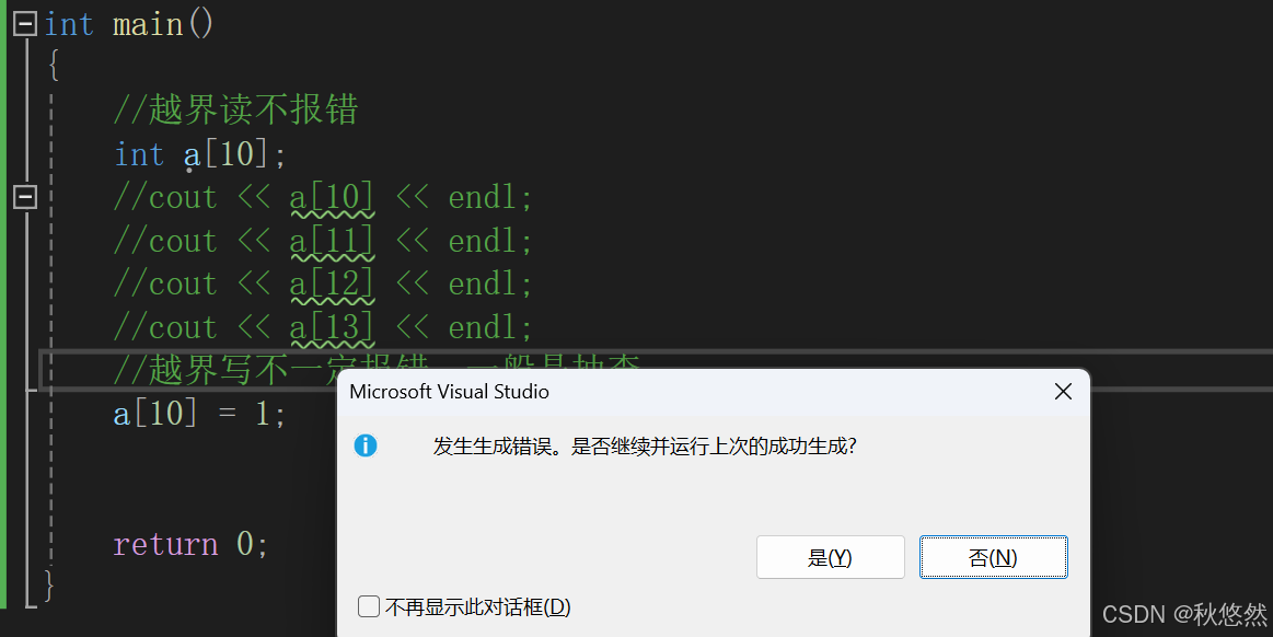 这里的指针就越界了,指针越界不一定报错。