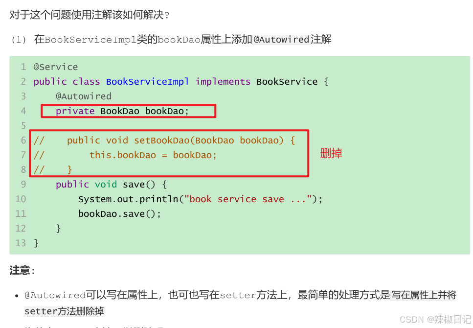 1.为BookDao提供setter方法