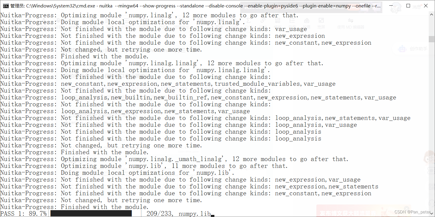 nuitka --mingw64 --show-progress --standalone --disable-console --enable-plugin=pyside6 --plugin-enable=numpy --onefile --remove-output camera.py进入虚拟环境->安装库->开始打包