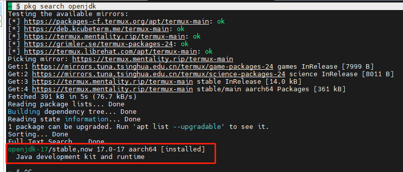 # 查找openjdk ~ $ pkg search openjdk