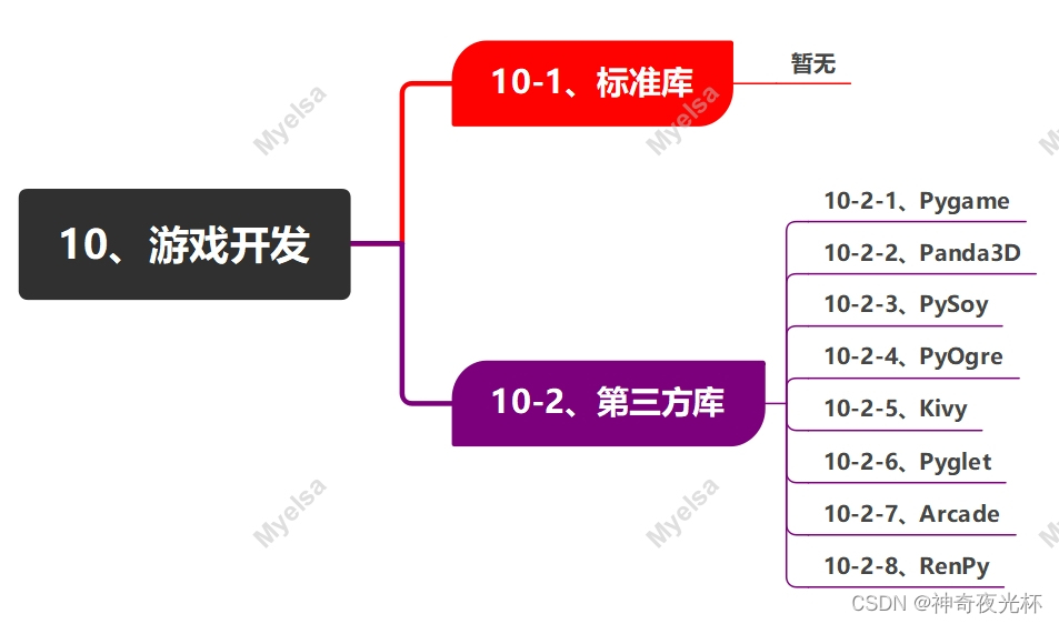10-2-1、Pygame:Pygame 是一组专为编写视频游戏而设计的Python模块,它建立在 SDL (Simple DirectMedia Layer)库之上,允许开发者使用Python语言创建功能齐全的游戏和多媒体程序,Pygame 具有高度的可移植性,可以在几乎所有平台和操作系统上运行。