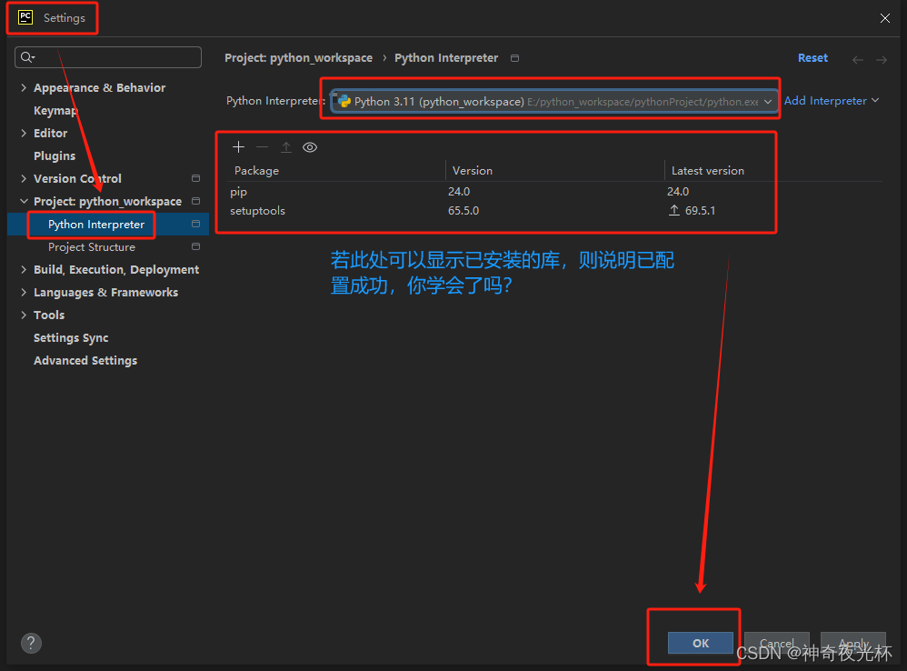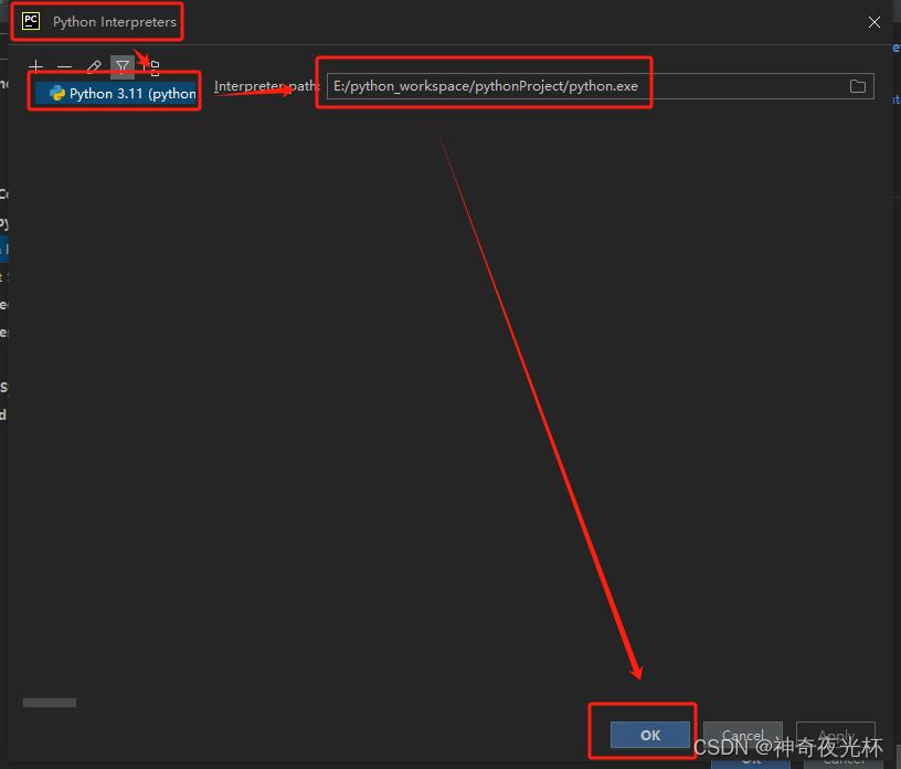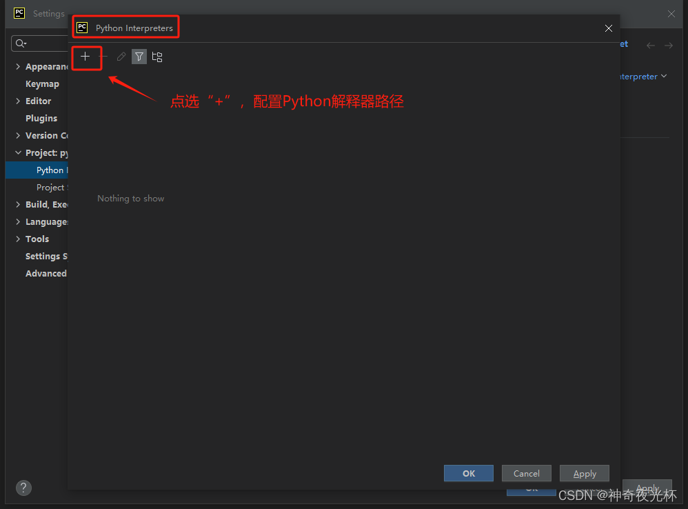 按选“ok”按钮,返回之前的Python Interpreters界面(注意界面内容变化),如下: