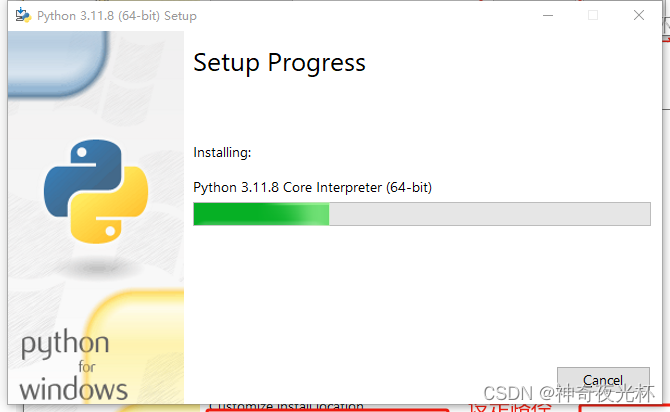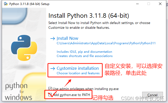 双击“python-3.11.8-amd64.exe”,开始安装: