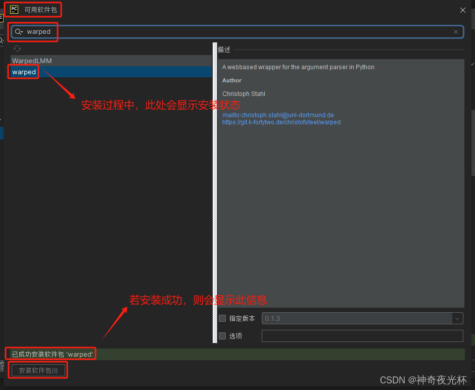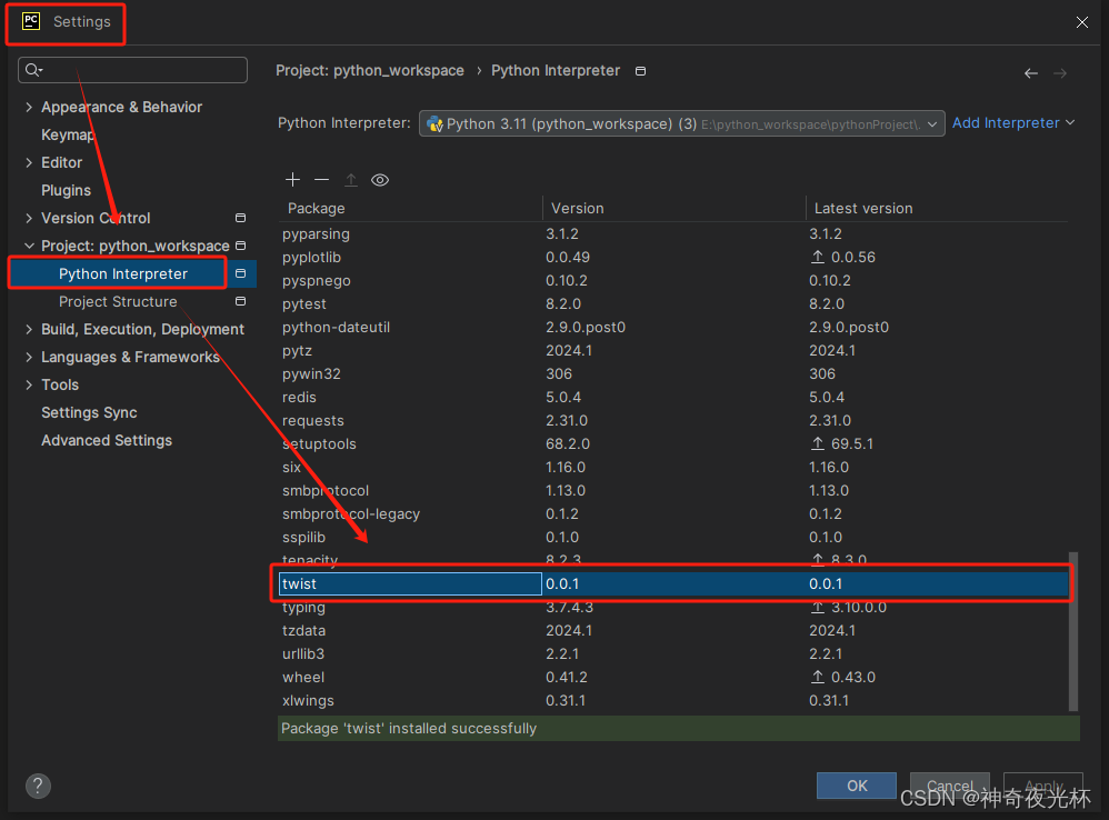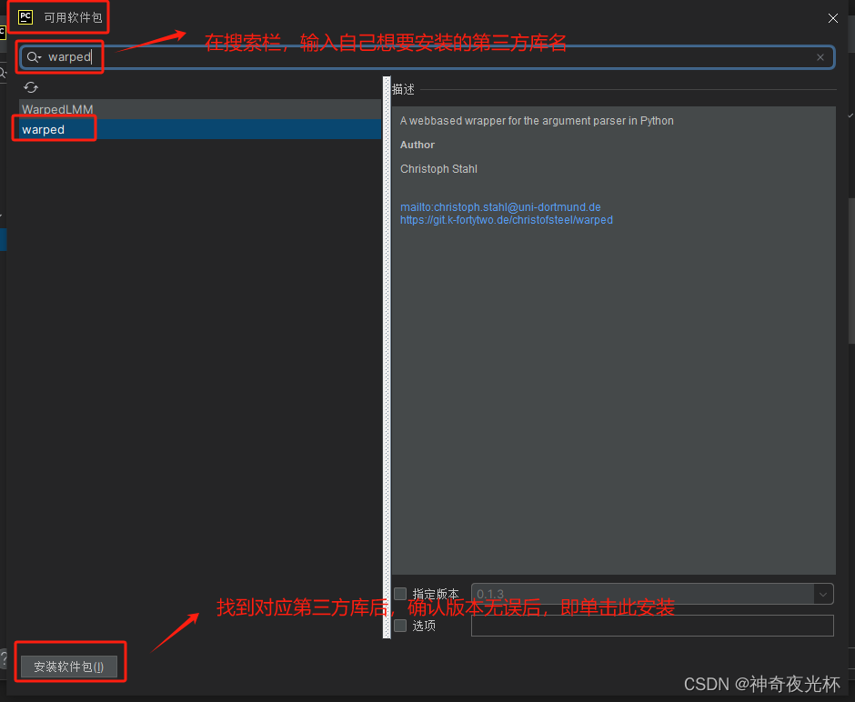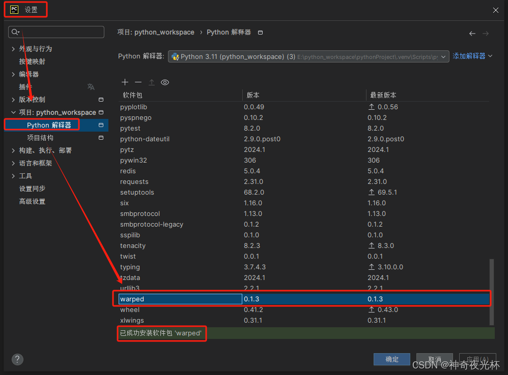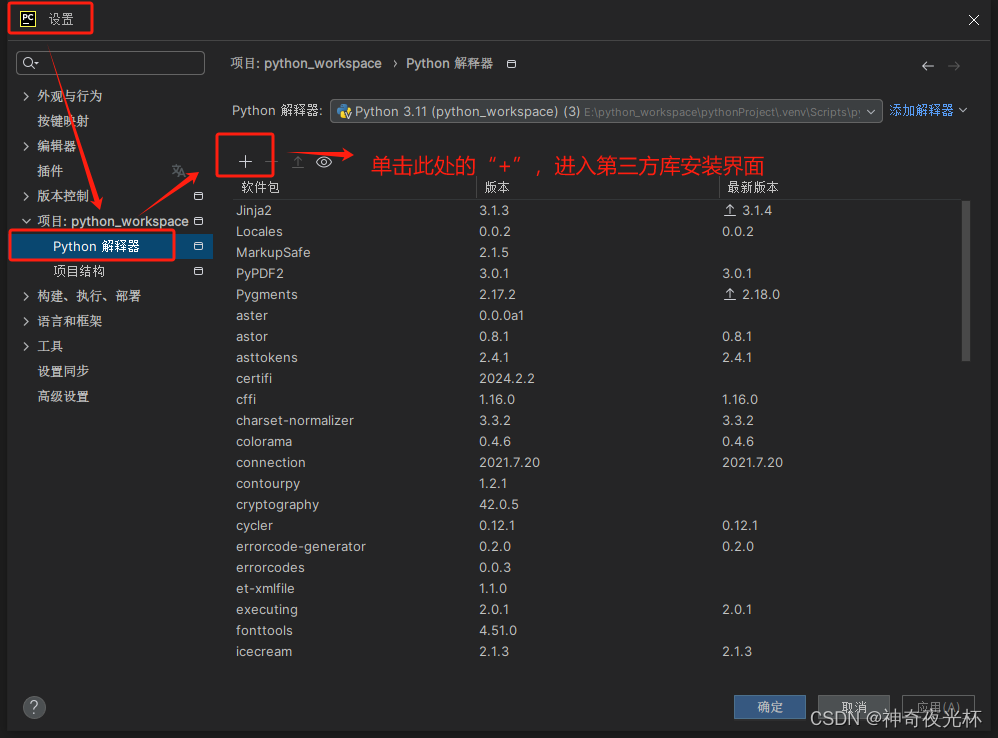 或者在软件界面,用快捷键:Ctrl+Alt+S,直接可以进入上述设置界面进行相关第三方库安装操作。