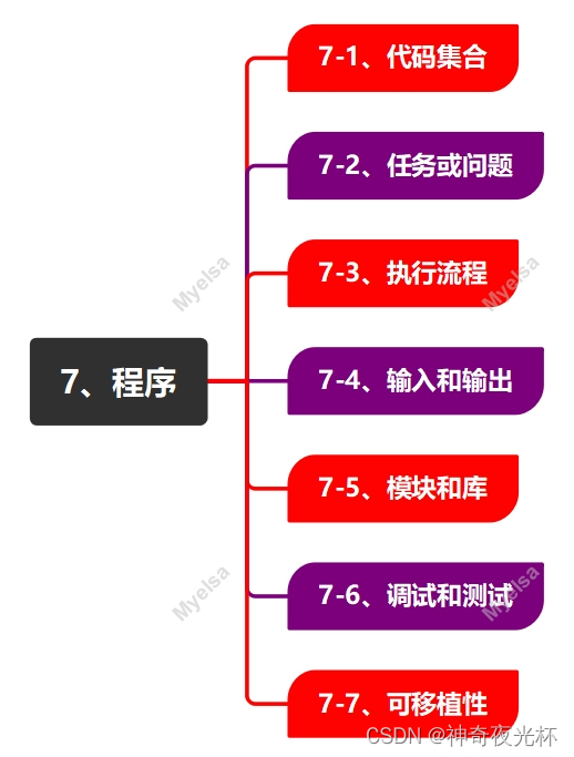 7-1、代码集合:程序是由一系列的Python代码组成的集合,这些代码可以定义变量、函数、类、控制结构(如条件语句和循环语句)等,以实现特定的功能。