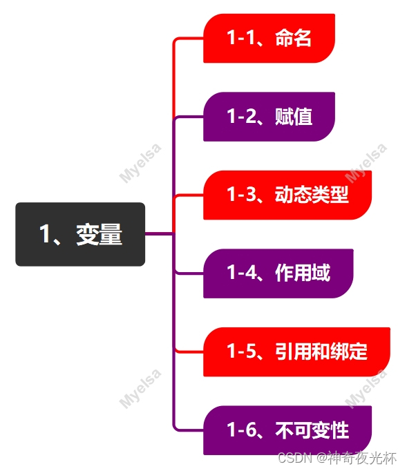 1-6、不可变性:虽然Python中的变量本身是可变的(即可以重新赋值),但某些类型的对象(如整数、浮点数、字符串和元组)是不可变的,这意味着一旦创建了这些类型的对象,就不能更改其值,但是,你可以将这些对象的引用赋值给变量,从而改变变量所引用的对象。