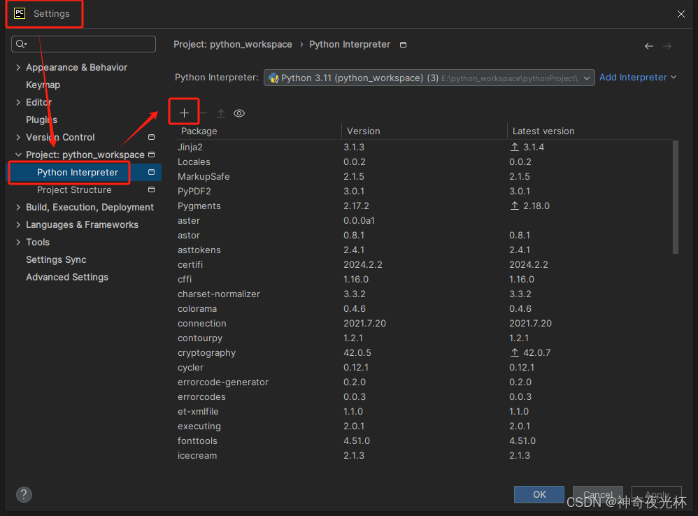 或者在软件界面,用快捷键:Ctrl+Alt+S,直接可以进入上述Settings界面进行相关第三库安装操作。