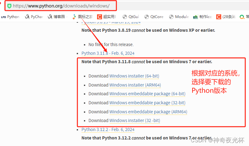 1-2、Python版本:Python 3.11.8(下载地址:Python Releases for Windows | Python.org)