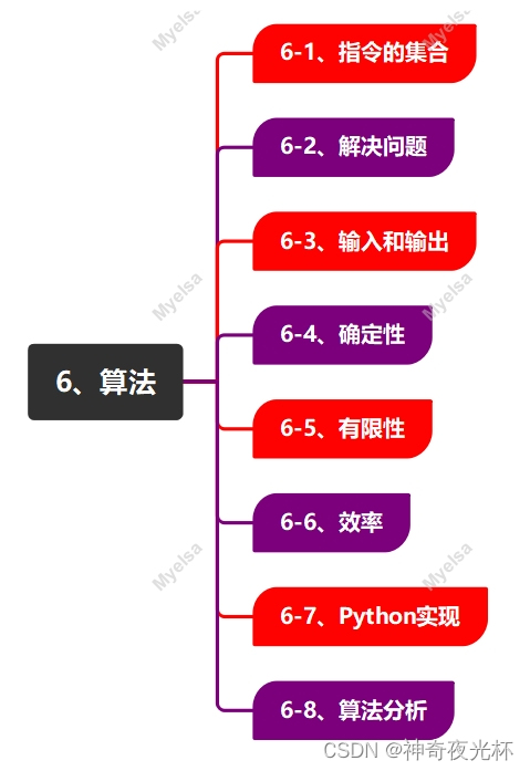6-1、指令的集合:算法是由一系列步骤或指令组成的,这些步骤或指令必须被精确地定义,以便能够由人或计算机按照特定的顺序执行。