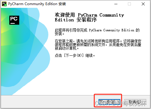 双击“pycharm-community-2024.1.1.exe”,开始安装: