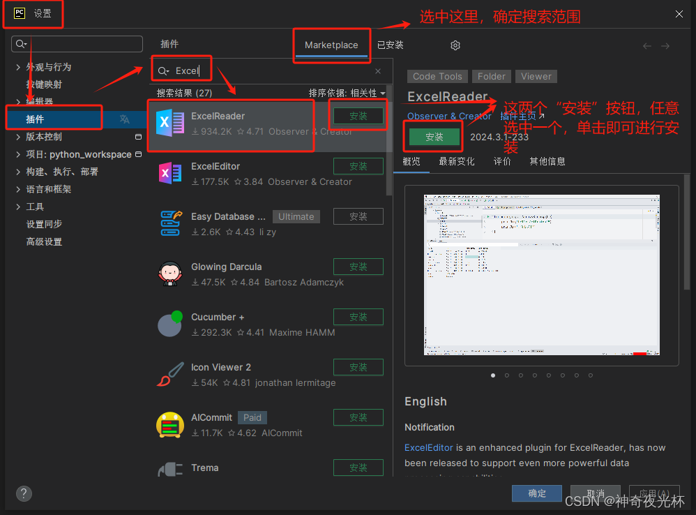 或者在软件界面,用快捷键:Ctrl+Alt+S,直接可以进入上述设置界面进行相关插件安装操作。