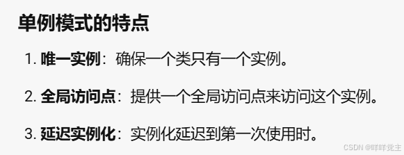 单例模式是一种创建型设计模式,确保一个类只有一个实例,并提供一个全局访问点来访问这个实例,它在需要控制资源的访问或确保某些操作只执行一次的场景中非常有用