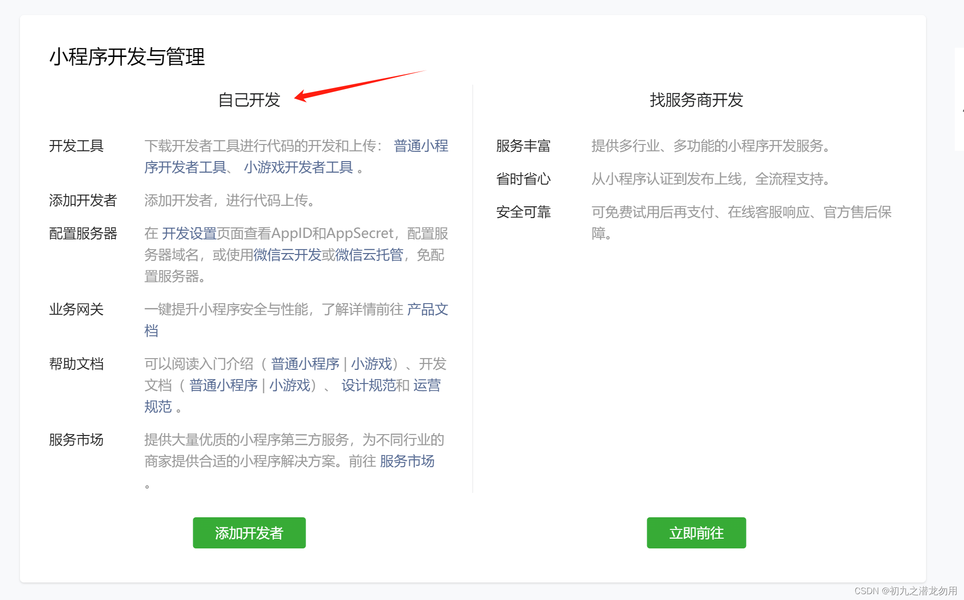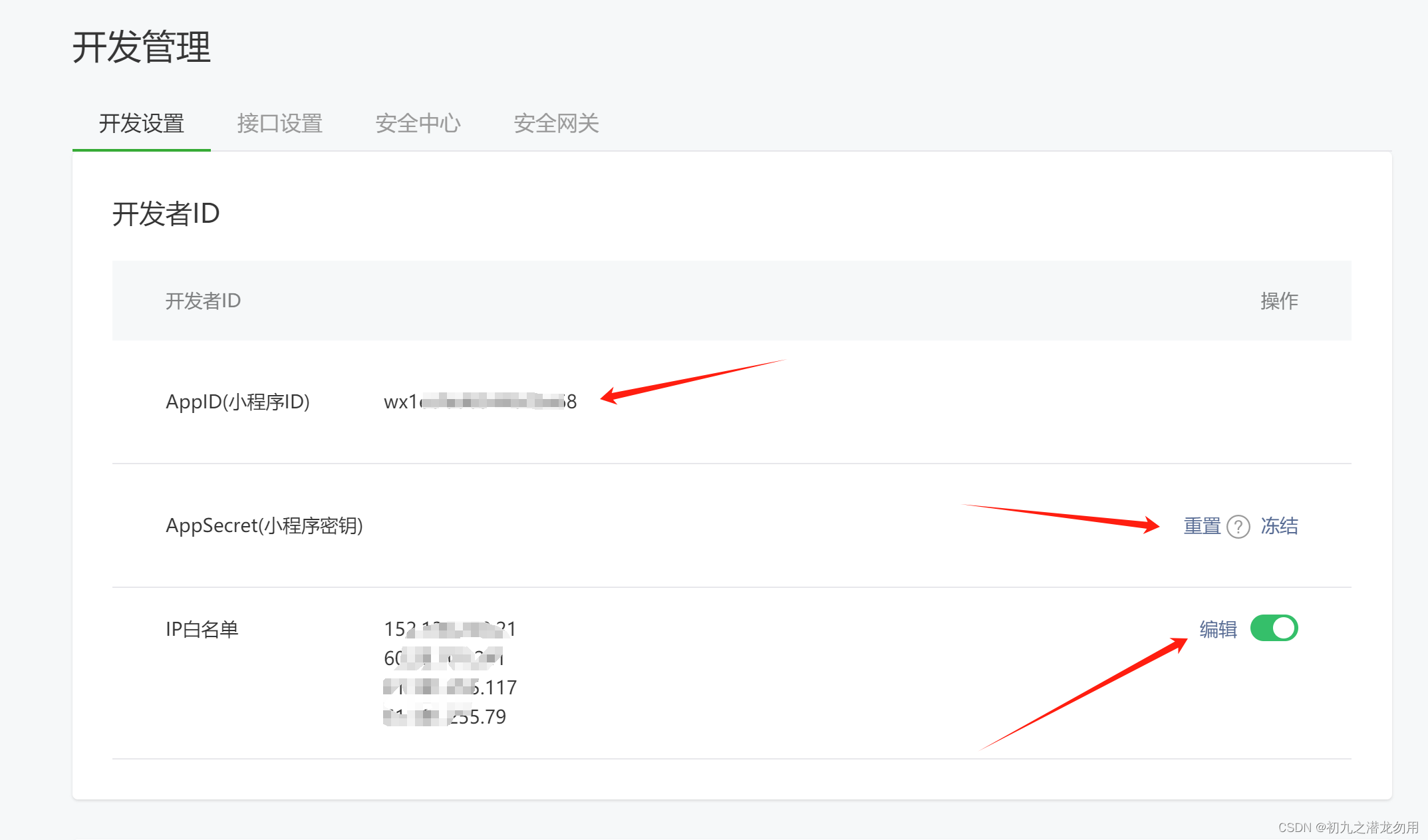 选择开发管理、开发设置,开发者请务必记住AppID和AppSecret,如果首次请务必申请小程序开发密钥,申请过程中可能要求管理员扫码确认。