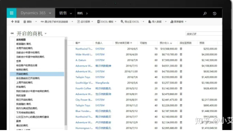 • 无缝集成Office 365。员工每天在微软 Dynamics 商业应用中使用熟悉易用的生产力工具,比如员工直接在Dynamics 365销售接口,使用熟悉的 Excel 工具管理销售通路。