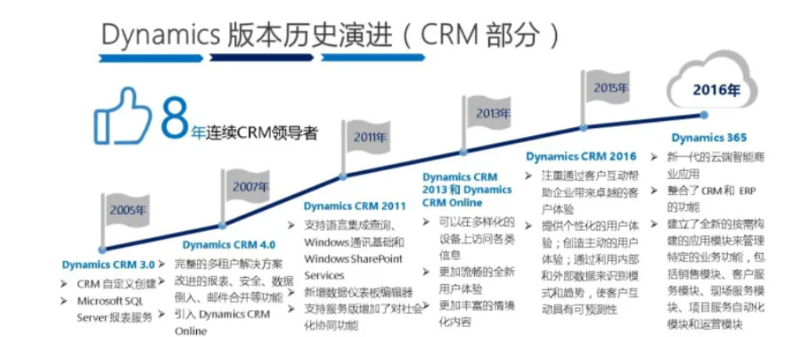 Microsoft Dynamics 365的产生,是微软打造出的云端的新一代智能商业应用模块。Dynamics 365整合CRM(Dynamics CRM Online)和ERP(Dynamics AX)的功能,建立了全新的按需构建的应用模块来管理特定的业务功能,包括Dynamics 365 销售模块、Dynamics 365 [客户服务模块](https://www.zhihu.com/search?q=客户服务模块&search_source=Entity&hybrid_search_source=Entity&hybrid_search_extra={"sourceType"%3A"answer"%2C"sourceId"%3A1026323053})、Dynamics 365 现场服务模块、Dynamics 365 项目服务自动化模块、和Dynamics 365 运营模块。Dynamics 365应用程序旨在实现个性化体验,提高生产力,提供更深入的洞察力并适应业务需求,帮助企业加速数字化转型,以满足客户不断变化的需求并捕捉未来新的商机。