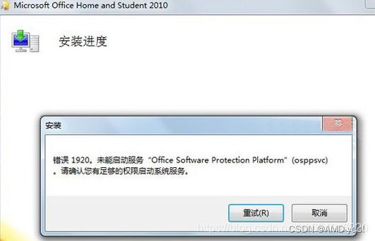 office 2010 在打开文档时提示需要配置office问题,配置到最后出现错误:1920 ,未能启动服务 “Office Software Protection Platform”(osppsvc) 。请确认您有足够的权限启动系统服务。