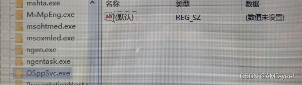 2.找到注册表如下位置:HKEY_LOCAL_MACHINE\SOFTWARE\Microsoft\Windows NT\CurrentVersion\Image File Execution Options\OSppSvc.exe(有的电脑是小写的,无所谓)