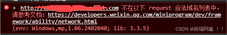 3. 发开网站查看发现错误 我们接口用的域名是备案域名的子域名,以及必须要是https 的才可以访问,硬性要求。网络 | 微信开放文档微信开发者平台文档https://developers.weixin.qq.com/miniprogram/dev/framework/ability/network.html