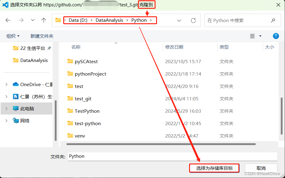 8)选择将GitHub仓库克隆到本地的文件夹: