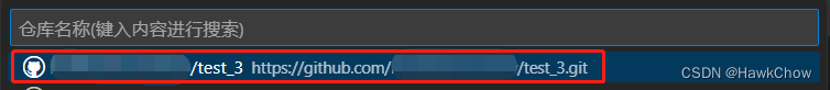 4)VSCode的命令界面会显示github上对应的存储库,点击“从GitHub克隆”