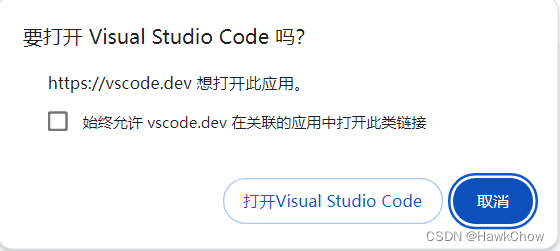 5)VSCode软件会弹出如下对话框,选择“允许”