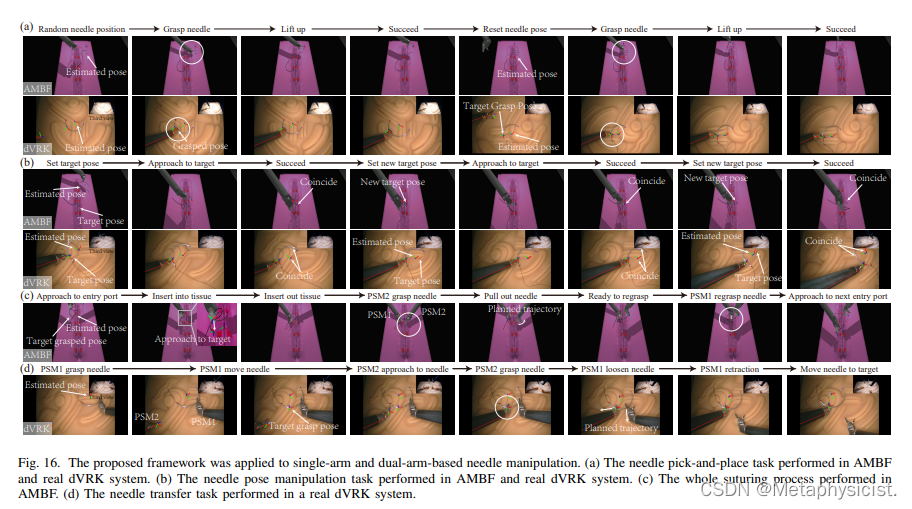- 该框架部署在达芬奇研究套件 (dVRK) 平台上,用于自动针操作。