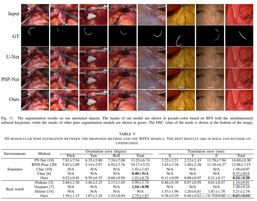 总的来说,实验证明了所提出的多任务 Needle-Net 和 3D 姿态估计框架在具有挑战性的手术场景中的有效性。