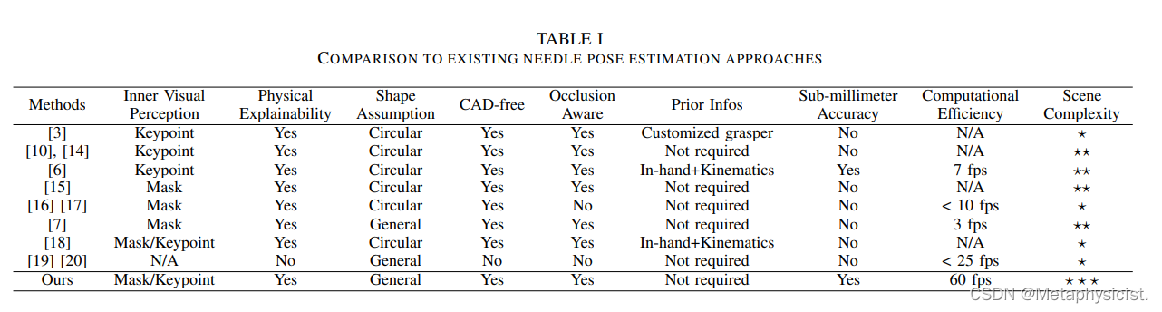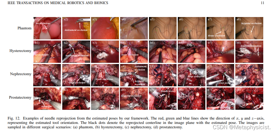 这是前期工作的全面改进版本,该工作在AccelNet手术机器人挑战赛中排名第一。这是第一个可以在动态遮挡环境中从单目图像中实时准确估计任意形状针具姿态的工作,精度达到亚毫米级别,为机器人手术中的自动针具操作奠定了坚实的基础。主要贡献如下: