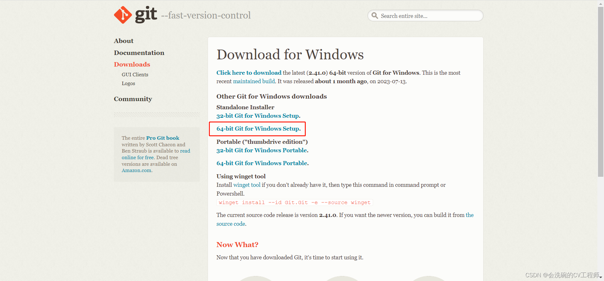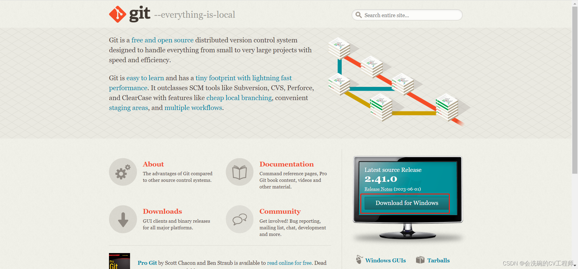 注意:在Windows操作系统中安装 Git之前,先从官方网站(Git)下载合适的Git版本。