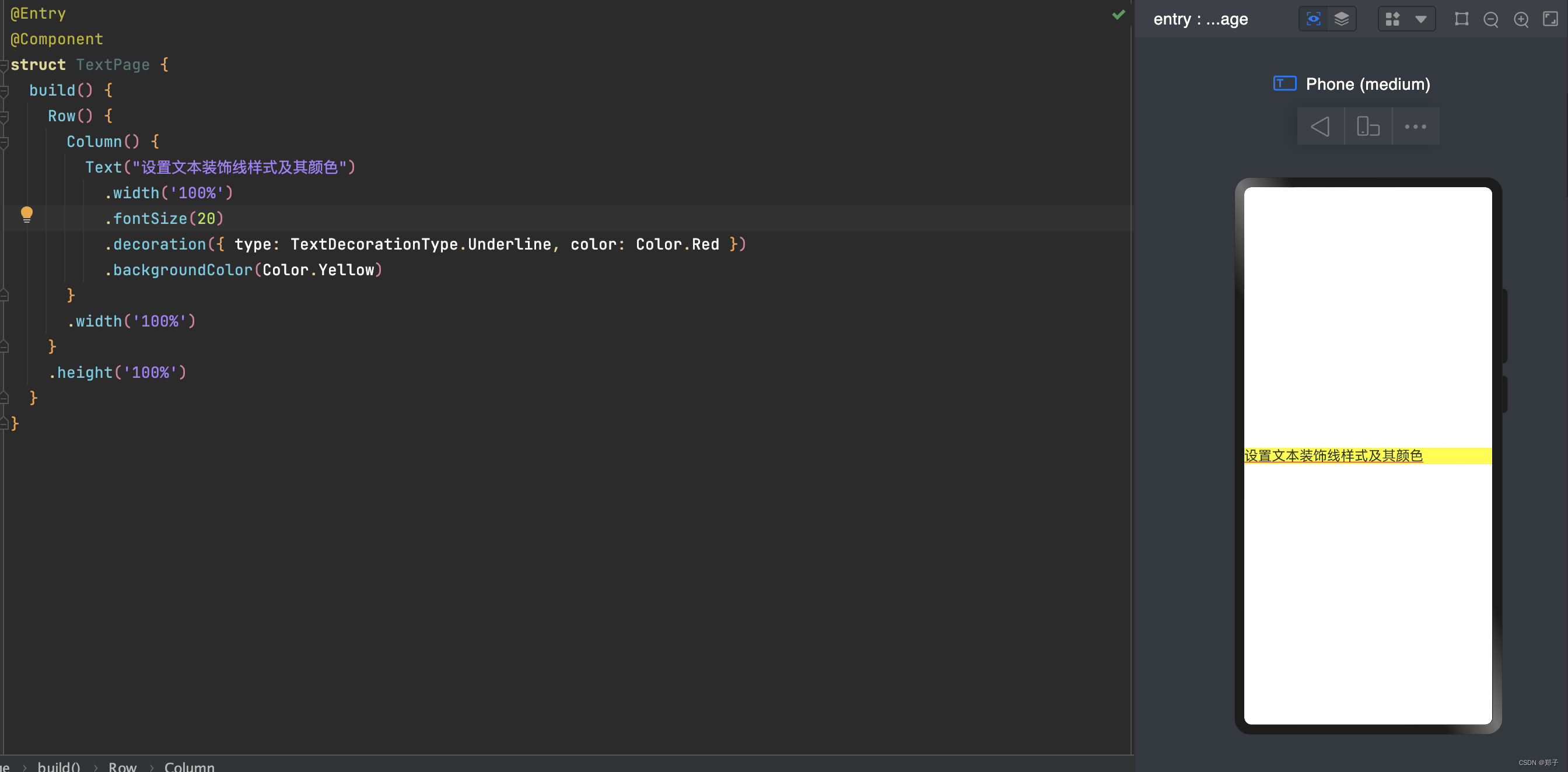 .decoration({ type: TextDecorationType.Underline, color: Color.Red })