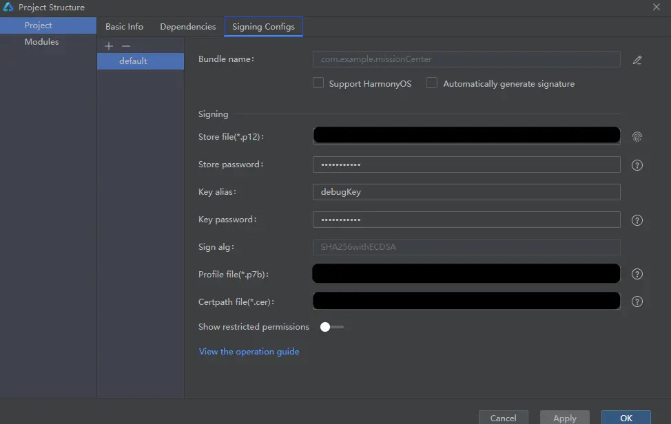 DevEco的自动签名模板默认签名权限为normal级。而本应用设计到ohos.permission.MANAGE_MISSIONS权限为system_core级别。自动生成的签名无法获得足够的权限,所以需要将权限升级为system_core级别,然后签名。