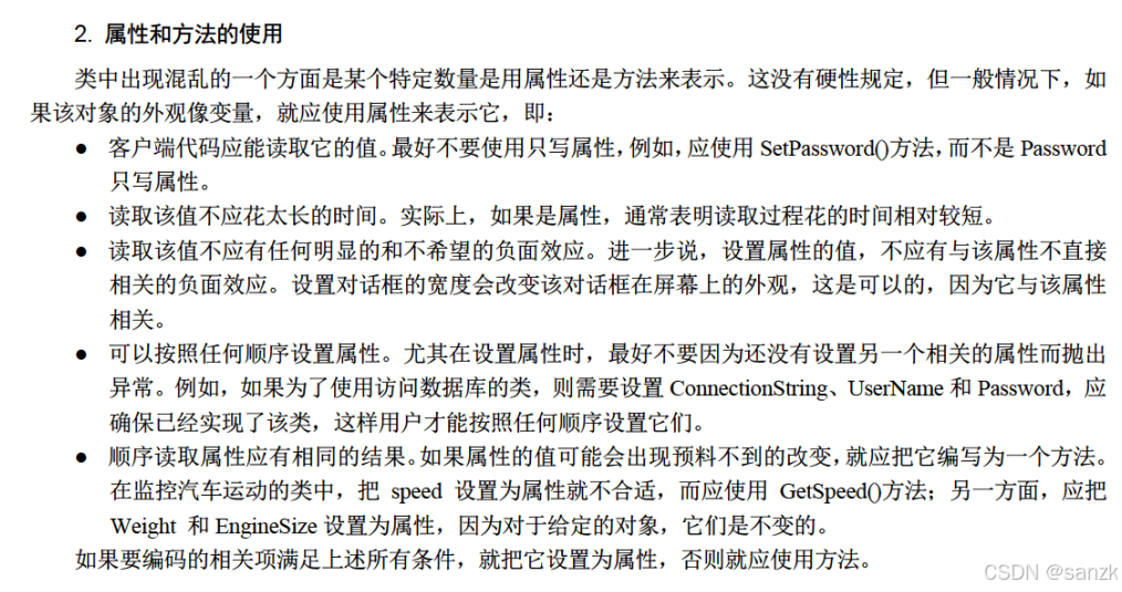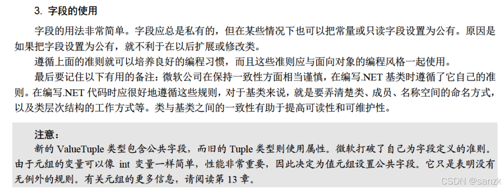 4、设计原则:按照C#的设计原则,公共数据成员应该被声明为属性而不是公共字段。即使是简单的数据存取,也推荐使用自动属性(auto-implemented properties)来提供更好的封装。