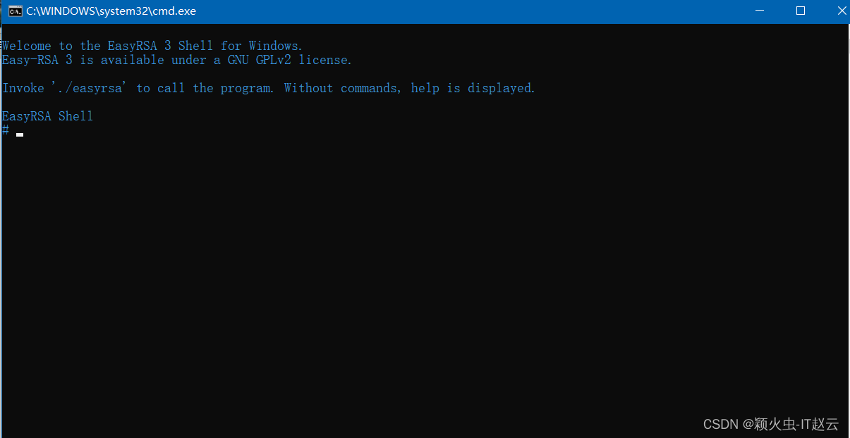 Cmd管理员运行,然后进入D:\OpenVPN\open\easy-rsa目录下运行EasyRSA-Start.bat 进入EasyRSA Shell命令模式。