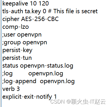 tls-auth ta.key 0 # This file is secret TLS认证密钥 防止DODS等,UDP淹没等恶意gongji,服务器端配置为0 客户端配置为1