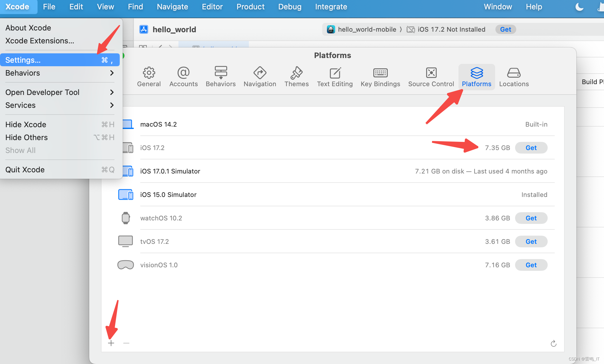 例如: xcrun simctl runtime add /Users/leiming/Downloads/iOS_17.2_Simulator_Runtime.dmg