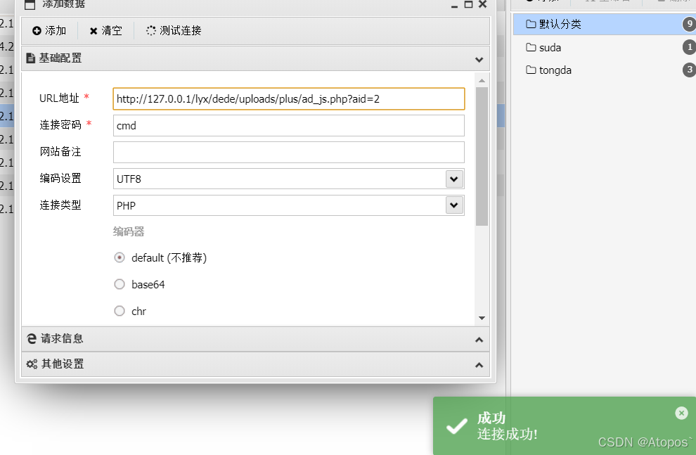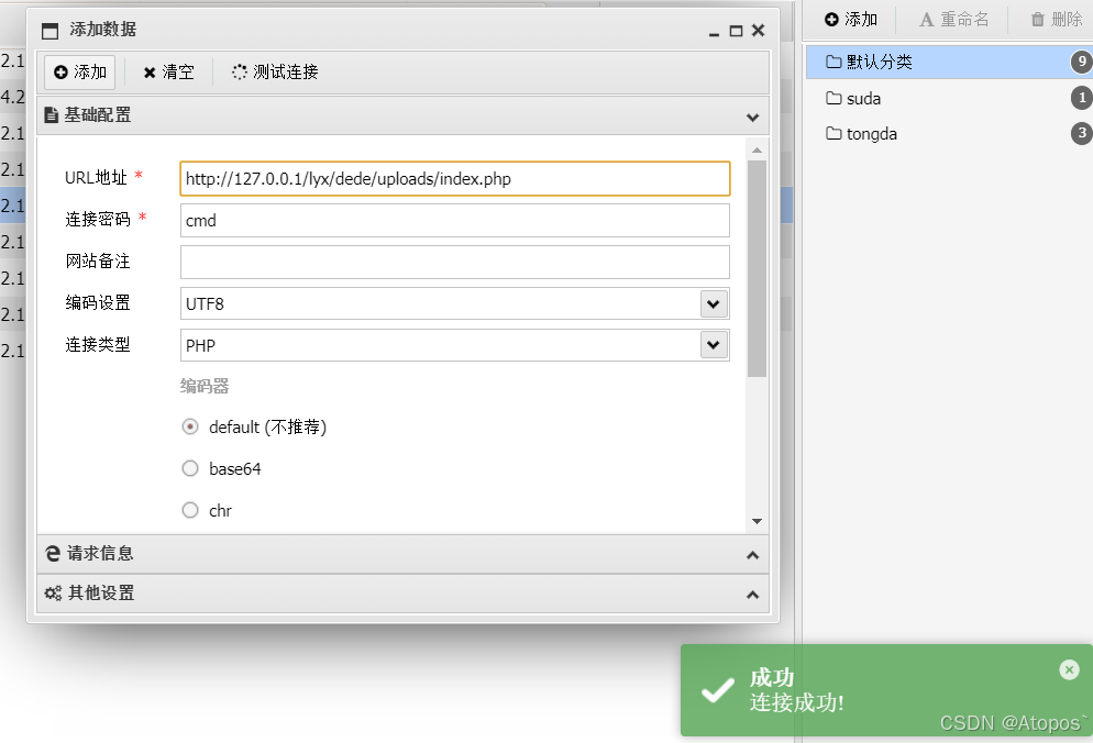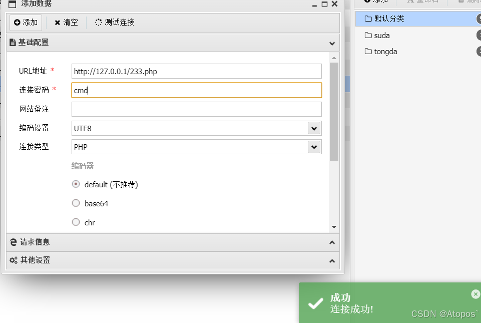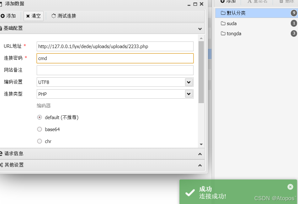 点击解压即可将其解压出来,然后访问,并用蚁剑成功连接