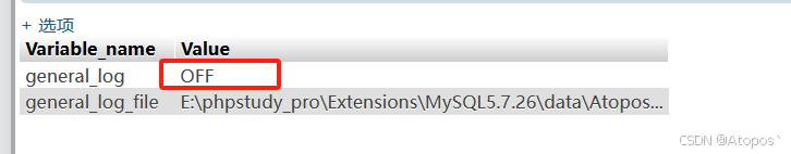 运行sq语句show global variables like '%general%';即可查看日志文件的开启状态,这里是off,代表着没开启,我们需要先将其开启