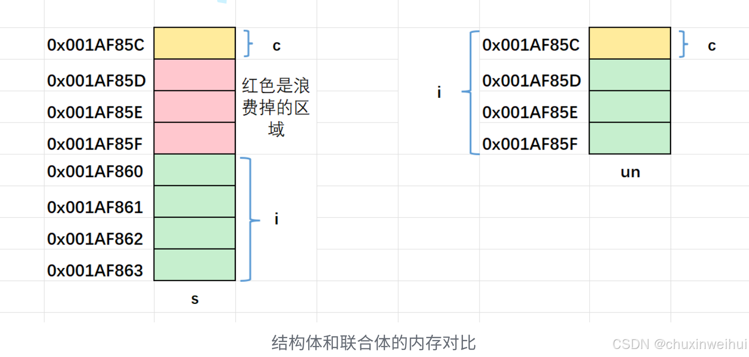 我们发现c与i的内存在一起,而这就是联合体的特点
