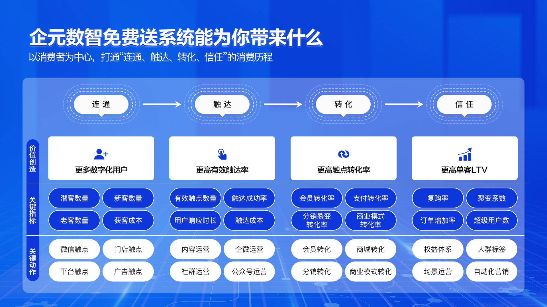 这一免费赠送计划,旨在让更多企业受益于数字化转型的便利和机遇。企元数智相信,通过免费提供新零售合规分销系统,可以帮助企业解决数字化转型过程中的资金压力和技术难题,让他们更快速地适应新零售市场的变化,提升竞争力和盈利能力。