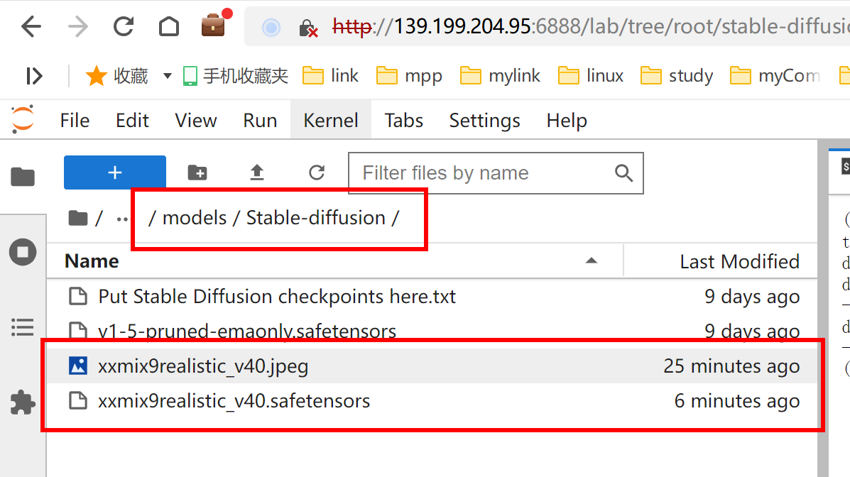 注:如果模型没下载下来需要本地上传以下,上传的时候网络还算OK,进度可以看到。