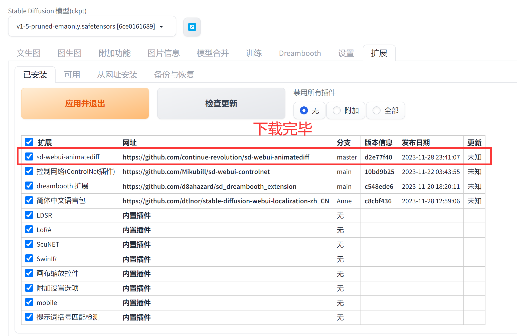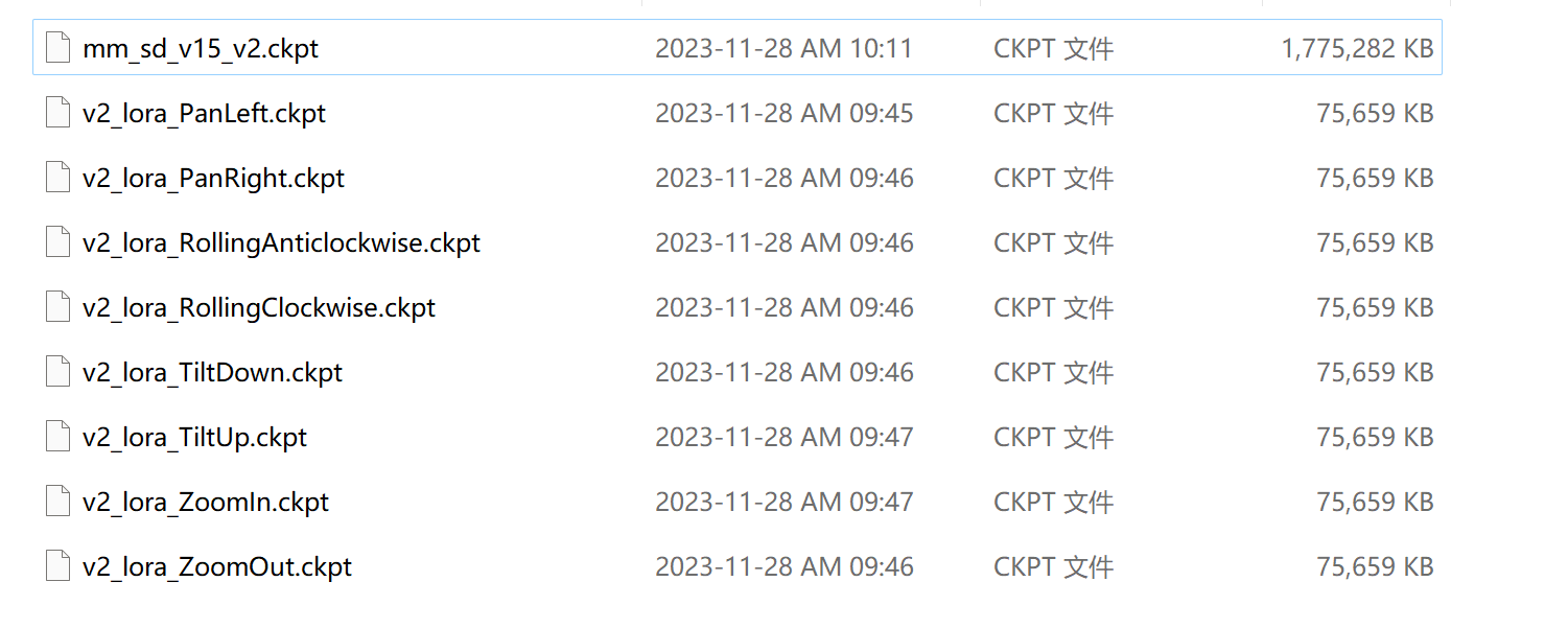 这里我们还需要一个模型【mm_sd_v15_v2.ckpt】,这个比较大。