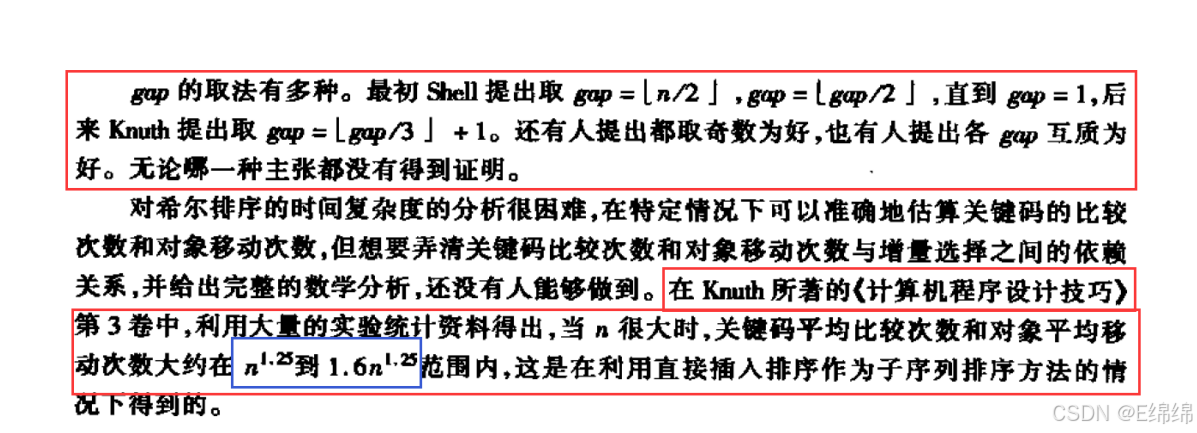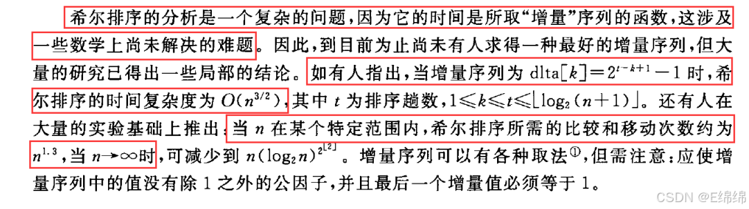 3. 希尔排序的时间复杂度不好计算,因为gap的取值方法很多,导致很难去计算,因此在好些树中给出的希尔排序的时间复杂度都不固定: