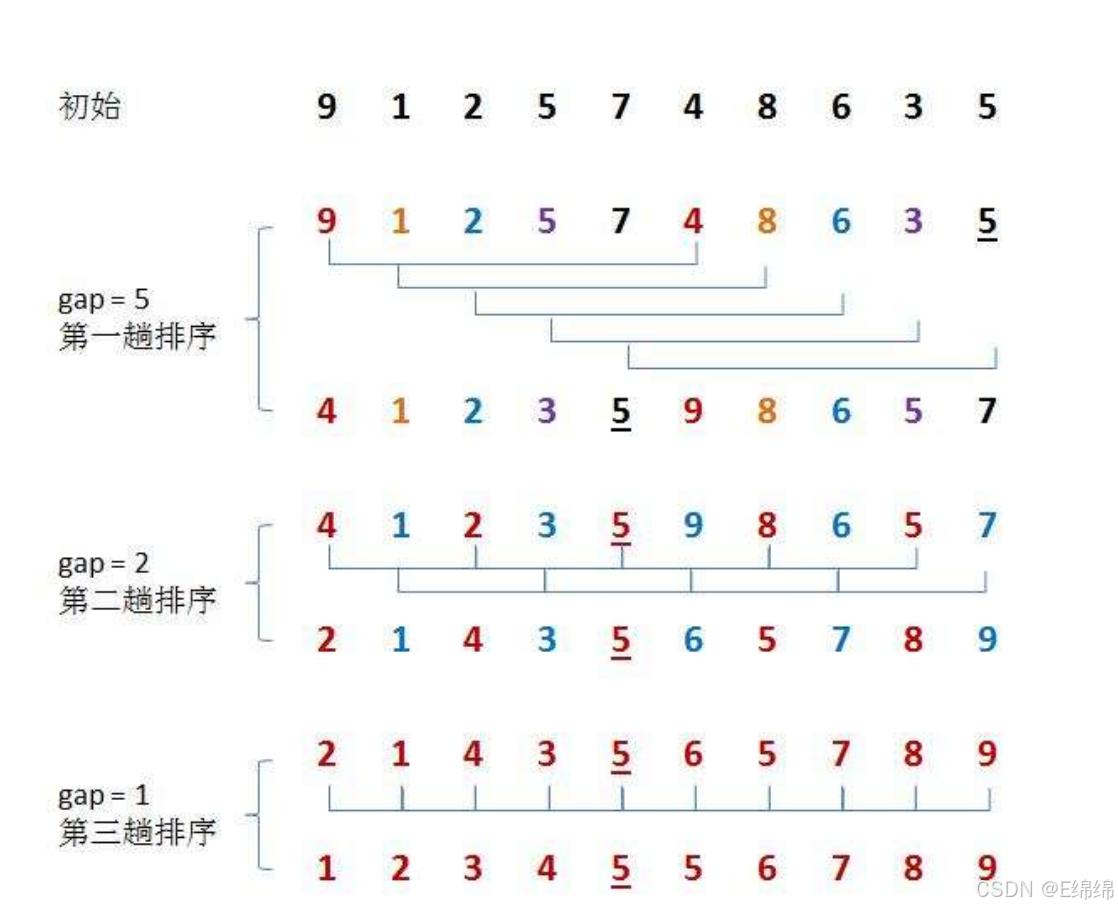 增量gap呈现从大到小的变化,使得序列一步步接近有序。