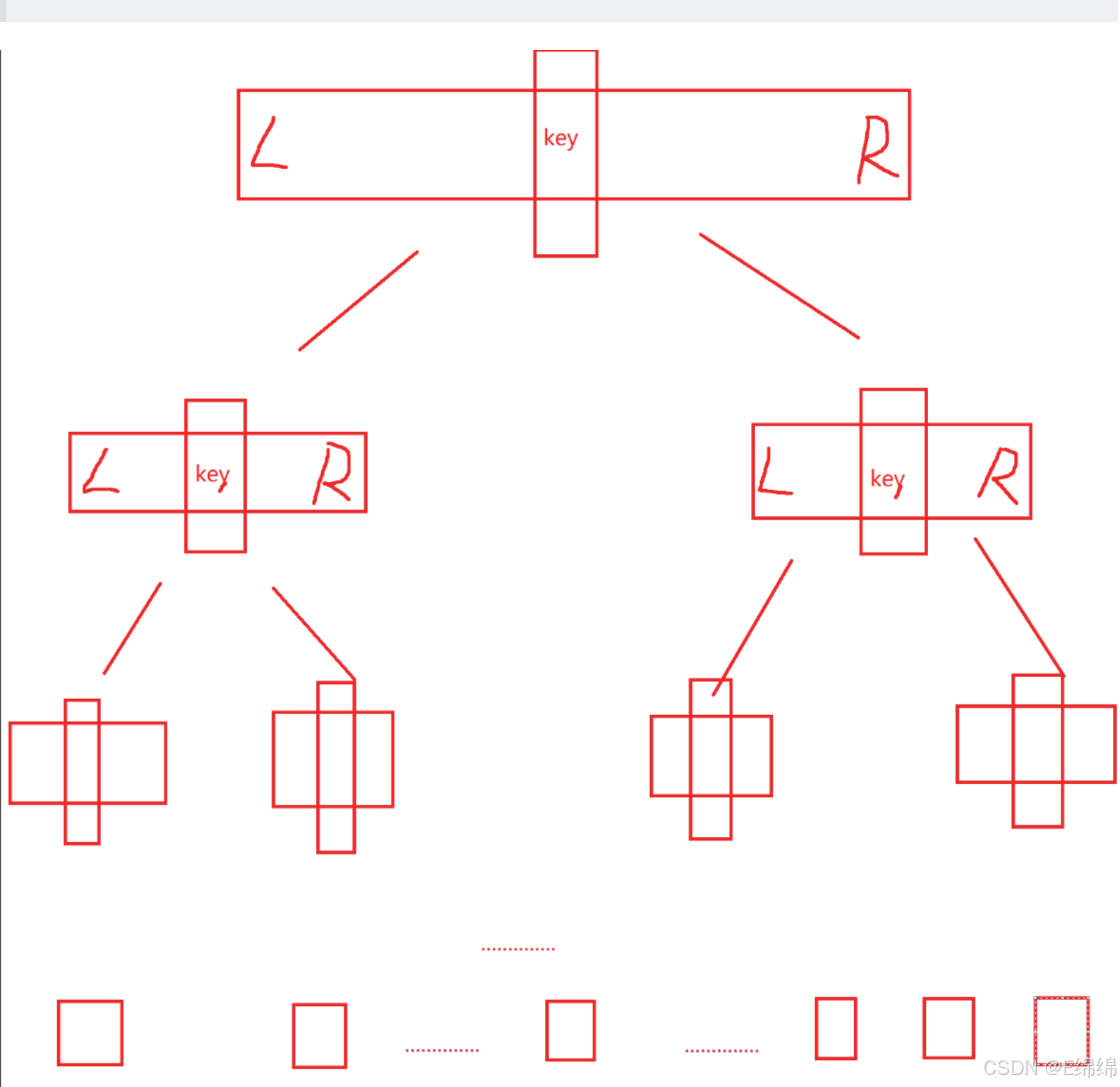 这种情况是快排的理想情况,类似于二叉树的结构,将快排的时间复杂度控制在了o(N*logN)