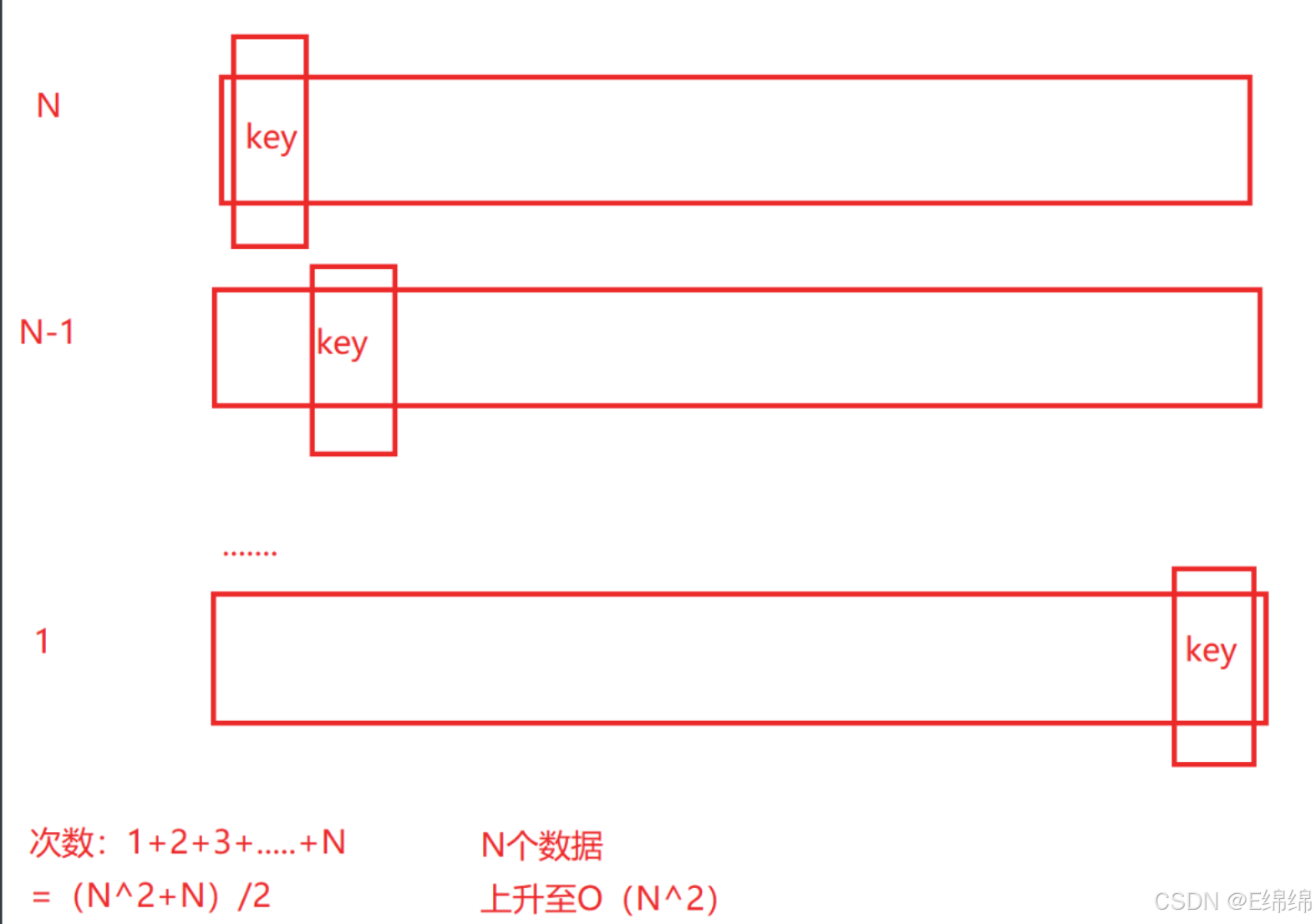 但若遇到这两种特殊情况——数组原本就有序或者数组内数据全部一样,时间复杂度会上升到O(N^2)。
