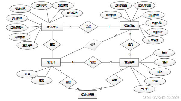 下面是整个物流配送后台系统中主要的数据库表总E-R实体关系图。