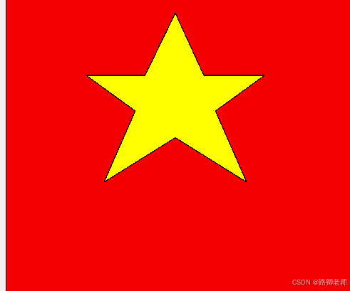 # -*- coding:utf-8 -*- """ ------------------------------------------------ File Name: 五角星的绘制.py Description: Author: lzq date:2024-08-03 09:56 ------------------------------------------------ """ import math import sys from PyQt6.QtWidgets import QApplication, QWidget from PyQt6.QtGui import QPainter, QColor, QBrush, QPainterPath, QPolygon from PyQt6.QtCore import Qt, QPoint class ChinaFlag(QWidget): def __init__(self): super().__init__() self.initUI() def initUI(self): self.setGeometry(100, 100, 500,400) self.setWindowTitle('金色五角星') self.show() def paintEvent(self, e): painter = QPainter() painter.begin(self) self.drawFlag(painter) painter.end() def drawFlag(self, qp): # 红色背景 qp.setBrush(QBrush(QColor(244, 0, 2))) qp.drawRect(10, 10, 288*2, 192*2) polygon=QPolygon([QPoint(100, 100),QPoint(166, 100),QPoint(200, 30),QPoint(232, 100),QPoint(300, 100),QPoint(245, 140),QPoint(280, 220),QPoint(200, 170),QPoint(120, 220),QPoint(155, 140)]) qp.setBrush(QBrush(QColor(255, 255, 0))) qp.drawPolygon(polygon) qp.end() if __name__ == '__main__': app = QApplication(sys.argv) ex = ChinaFlag() sys.exit(app.exec())