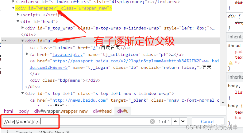 串联查找,这一项可以理解为父级元素的基础上直接查找所需的子元素。当元素定位不到的时候可以尝试此方法,不过比较的笨拙,但是实在。