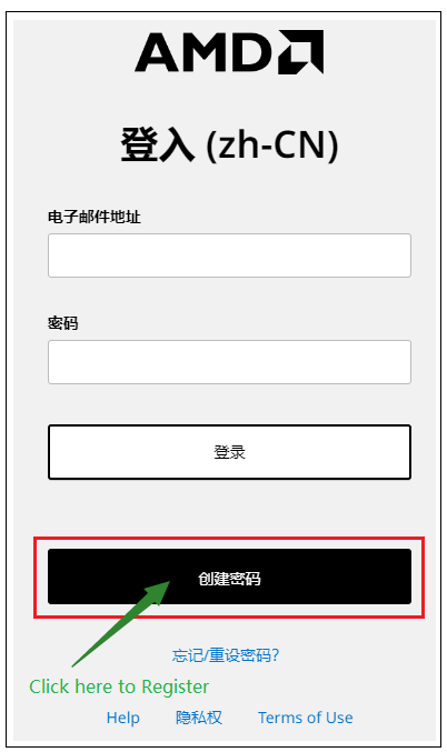所以我们要登录网站,就需要注册 AMD 账号。(如果你已经有账号了请自行跳过 Step2)