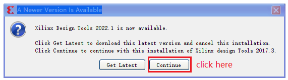 ② 此时可能会弹出让你下新版本的信息框,我们这里选择 Continue 即可:
